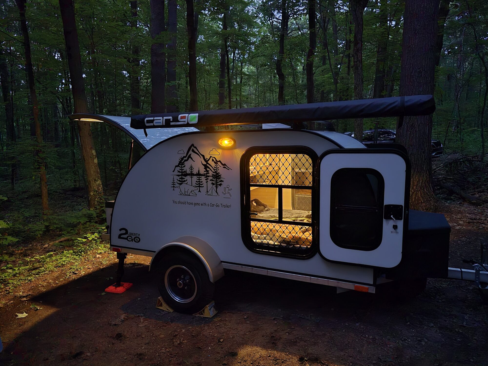 Our trailers are equipped with a Queen-sized high-density foam mattress (57” x 78”), an ultra-quiet 10-speed ceiling fan and 2 screen doors to provide you with restful sleep regardless of the temperature. Make an appointment for a visit and try it!